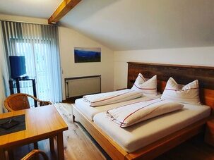 Machen Sie es sich gemütlich in unseren praktisch und komfortabel ausgestatteten Zimmern und genießen Sie den herrlichen Blick in die umliegende Landschaft. Warme Holztöne verbreiten eine behagliche Wohlfühl-Atmosphäre.